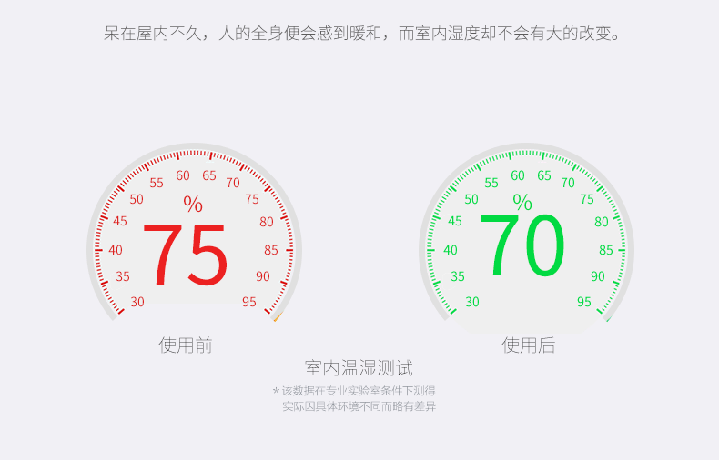 1、升温迅速、即开即热、3分钟面板达到设定温度,30分钟后,室温显著提高。