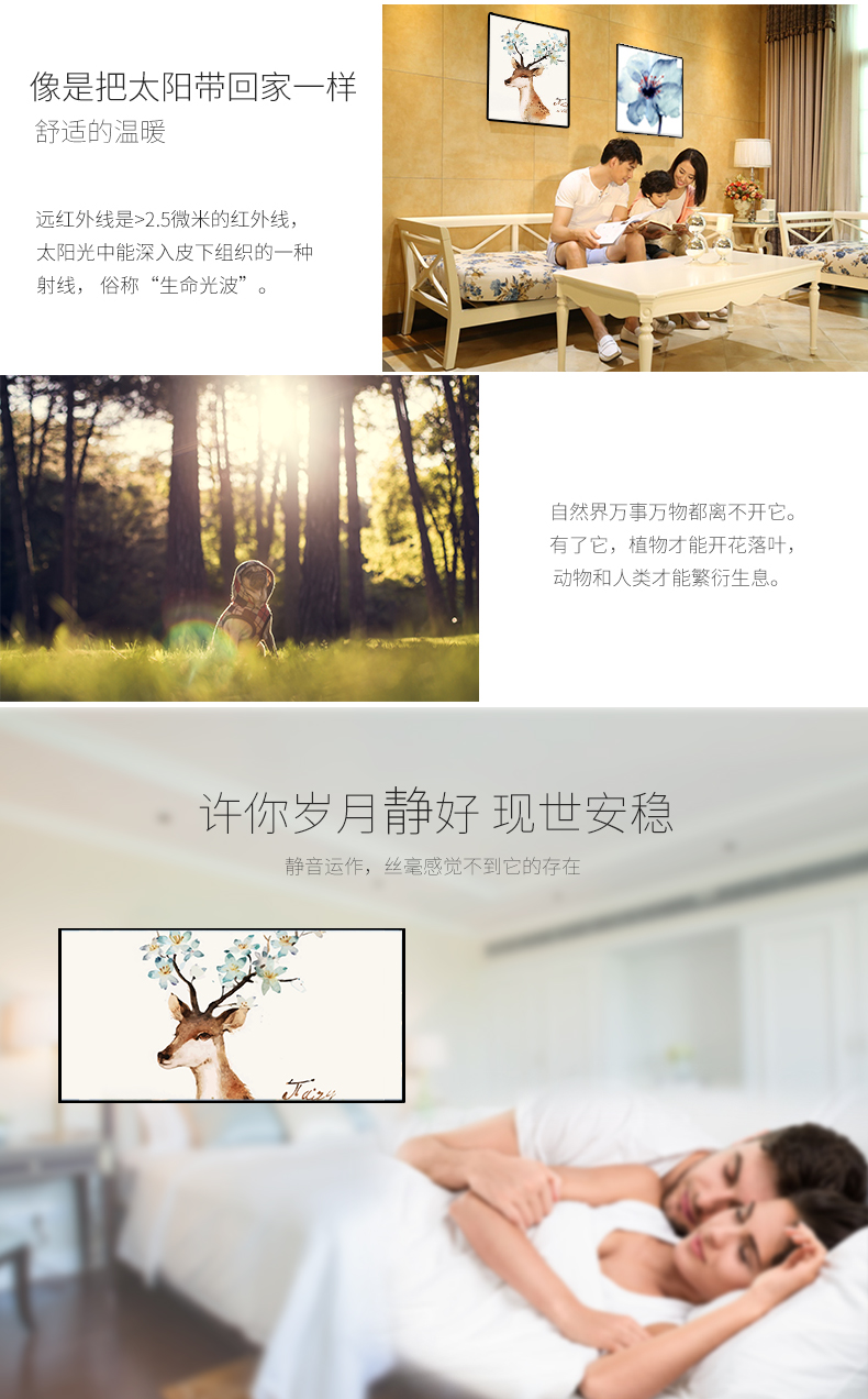 3、以“远红外线阳光热”技术为支持,仿佛沐浴阳光,身心惬意。远红外线素有“生命之光”的美誉。在远红外线照射之下,能够增强身体抵抗力,保持身体健康。